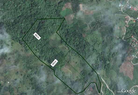 Actualmente la tierra se utiliza para el pastoreo, con una longitud de aproximadamente 600 metros de noroeste a sureste y de unos 220 metros de este a noroeste. La accesibilidad al lugar es buena, la carretera publica se encuentra en buen estado. El terreno se encuentra a 1200 metros sobre el nivel del mar, es suaventemente ondulado con una ligera inclinación hacia el este y por lo tanto, facilmente adecuado para la construcción. La finca tiene un camino y un pequeño arroyo que corre el agua delicioso todo el año. Se cuenta con los servicios de agua, electricidad y líneas telefónicas.